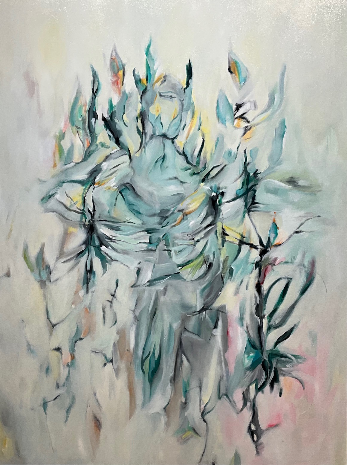 Sur le fil, 2025, Huile sur toile, 130 x 97 cm